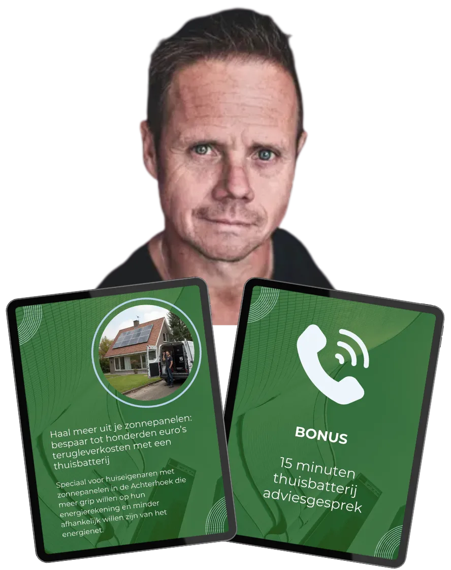 Met dit e‑book wil ik je hetzelfde bieden als in mijn gesprekken: rust, overzicht en duidelijke keuzes. Zodat jij precies weet of een thuisbatterij voor jou interessant is, hoeveel je ongeveer kunt besparen en hoe je stap voor stap minder afhankelijk wordt van het energienet – zonder technisch vakjargon en zonder verkooppraatjes.